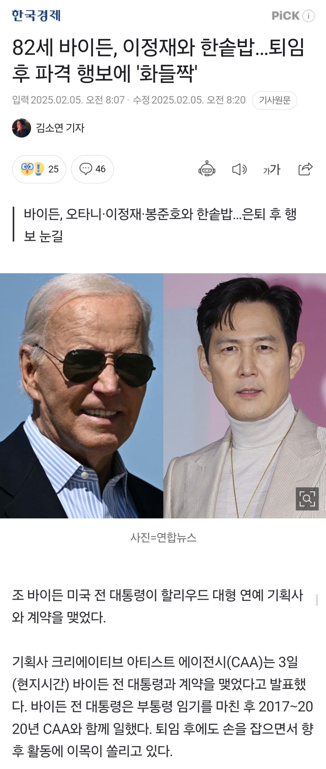 82세 바이든, 이정재와 한솥밥…퇴임 후 파격 행보에 '화들짝'