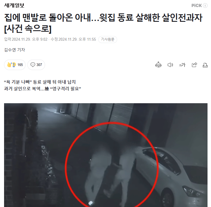 집에 맨발로 돌아온 아내…윗집 동료 살해한 살인전과자..