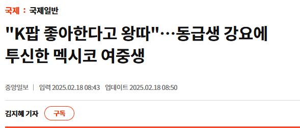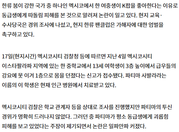 "K팝 좋아한다고 왕따"…동급생 강요에 투신한 멕시코 여중생