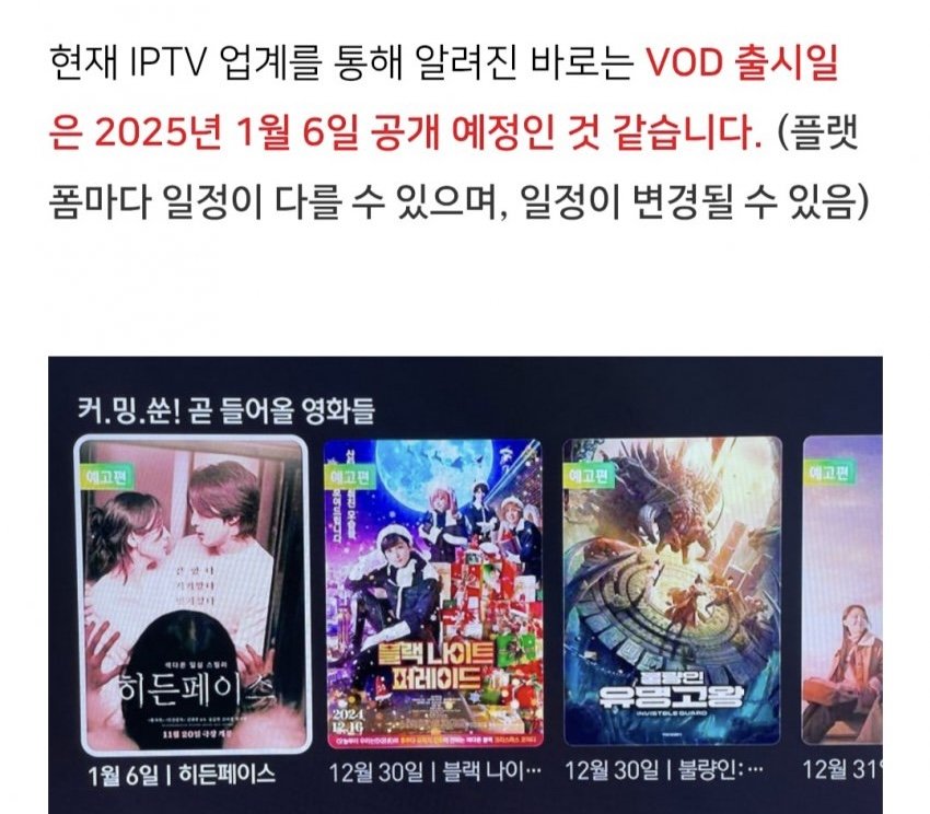 히든 페이스 VOD 1/6 출시 예정