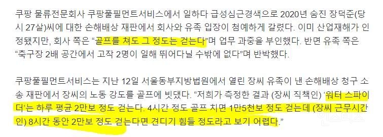 27살 직원 과로사…쿠팡 "골프 쳐도 그만큼 걸어”