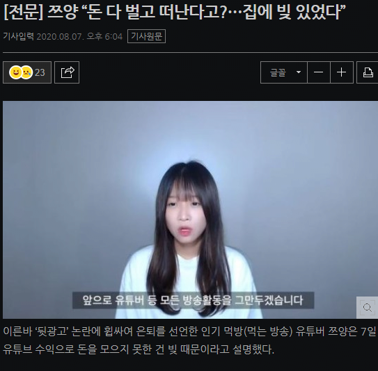 과거 쯔양 "모은돈 1도 없다. 알바할 생각" 이거 진짜였네