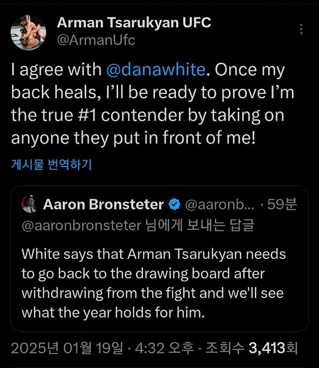 UFC 메인이벤트 펑크낸 사루키안 "내가 최고라는 사실 다시 입증할 것"