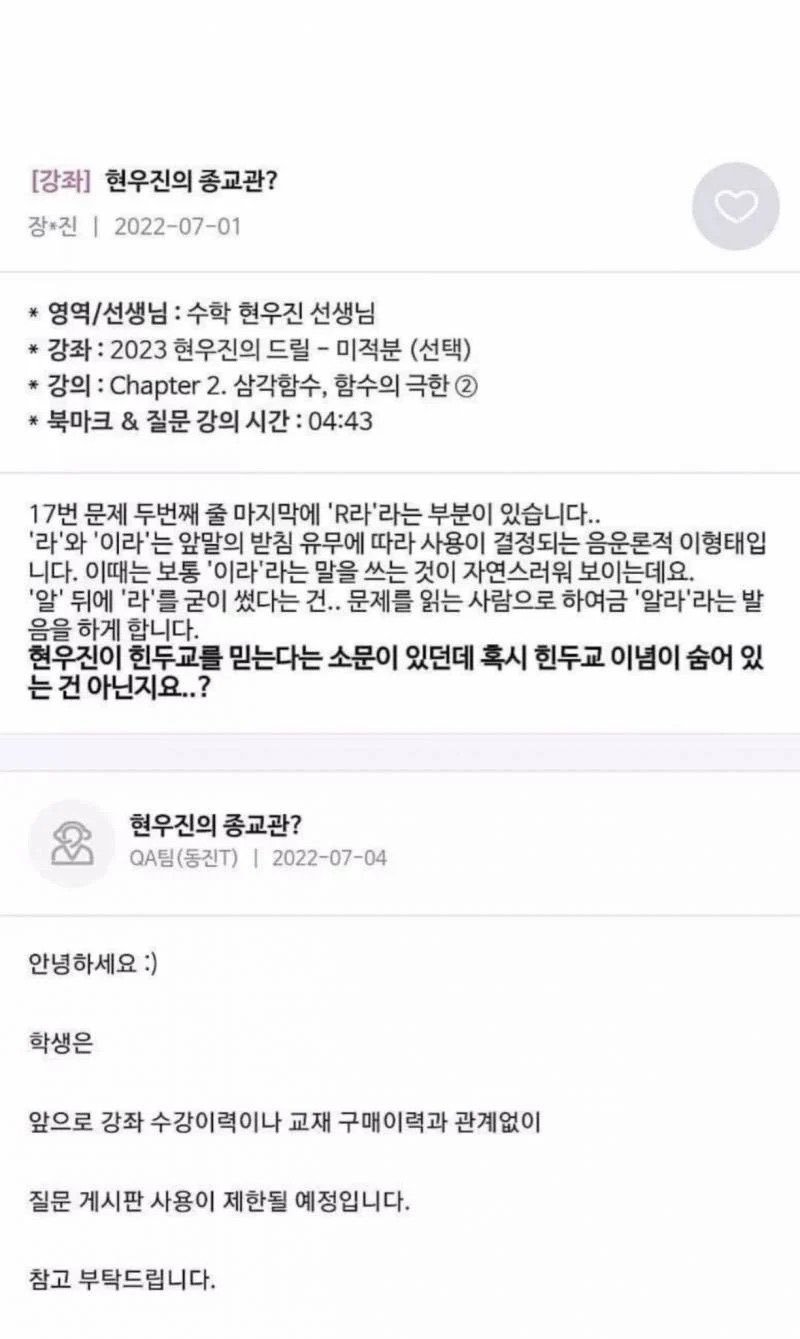 현우진의 종교관 ㄷㄷ