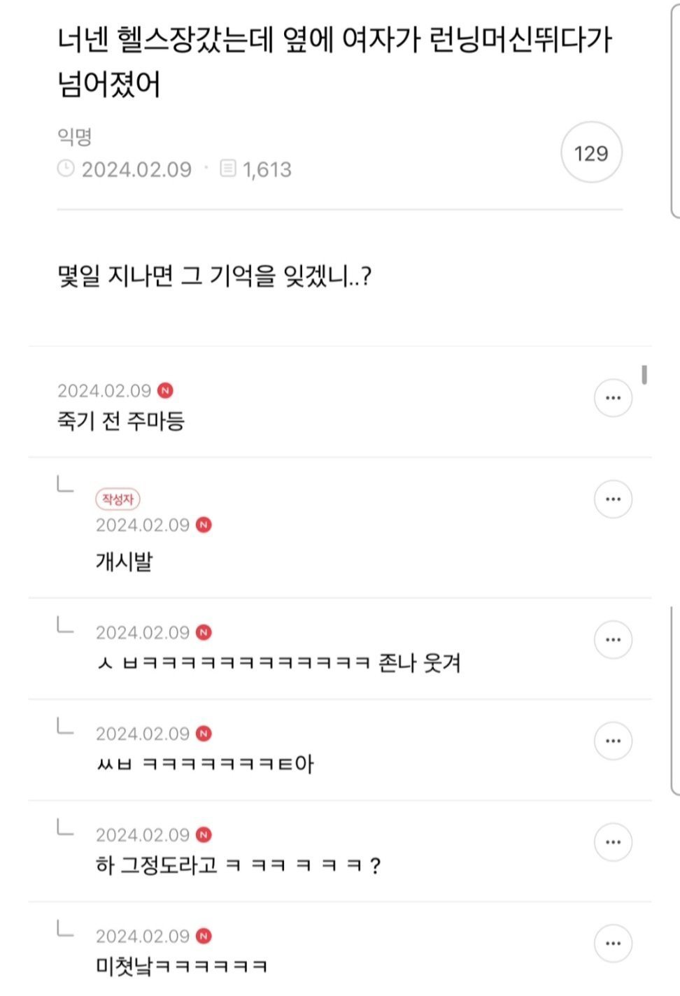 헬스장 갔는데 옆에 여자가 런닝머신 뛰다가 넘어졌어...jpg