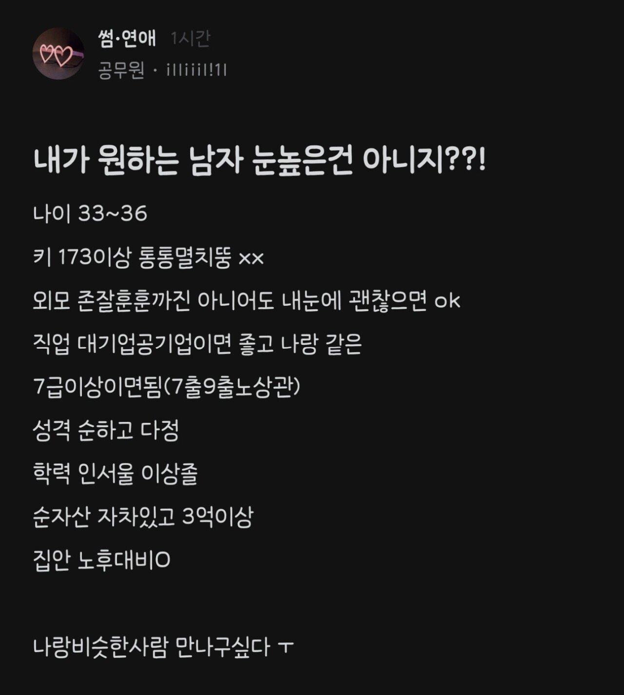 블라인드) 30대 여자가 원하는 남자 조건 jpg.