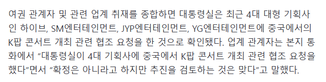 [단독] 1월 초 중국서 ‘K팝 콘서트’ 개최 추진…한한령 해제 초읽기
