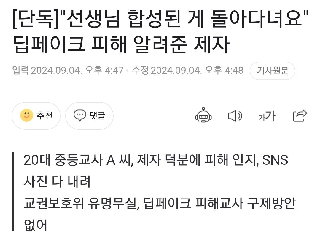 [단독]"선생님 합성된 게 돌아다녀요" 딥페이크 피해 알려준 제자