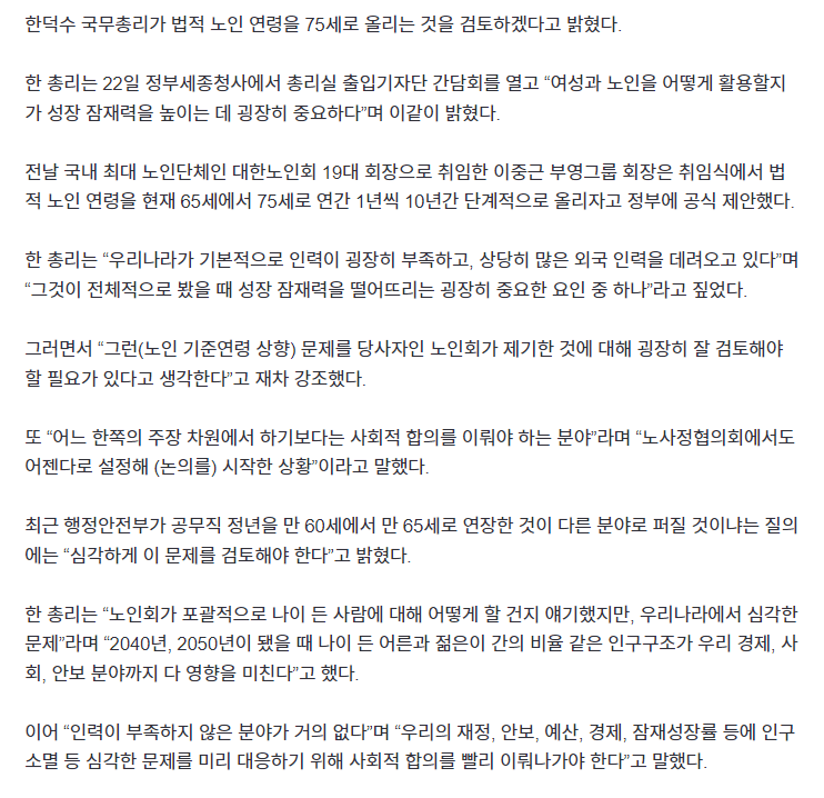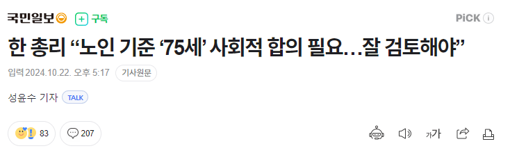 “노인 기준 ‘75세’ 사회적 합의 필요…잘 검토해야”