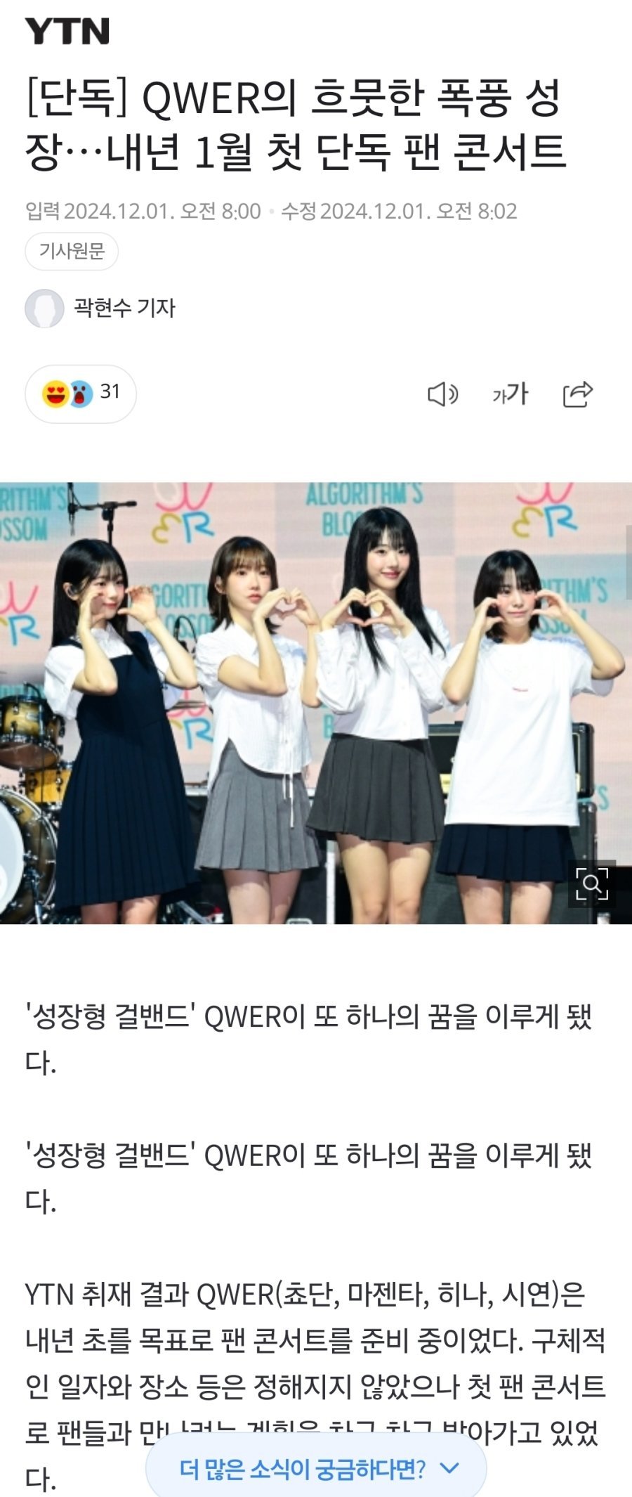 [단독] QWER의 흐뭇한 폭풍 성장…내년 1월 첫 단독 팬 콘서트