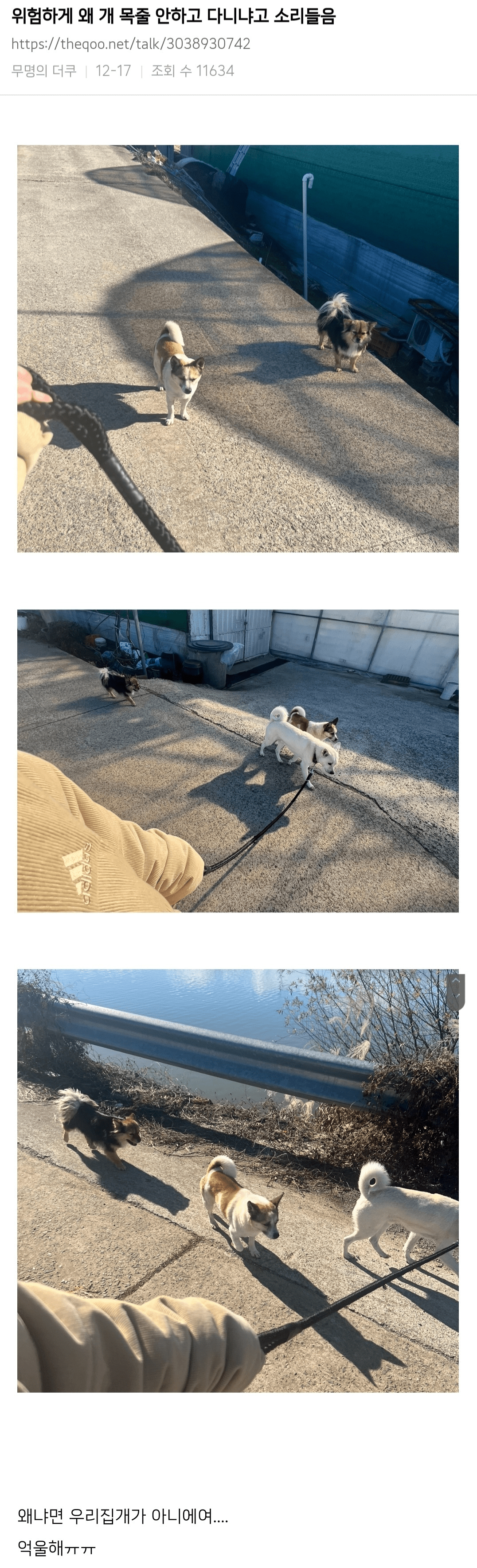 위험하게 왜 개 목줄 안하고 다니냐고 소리들음.jpg