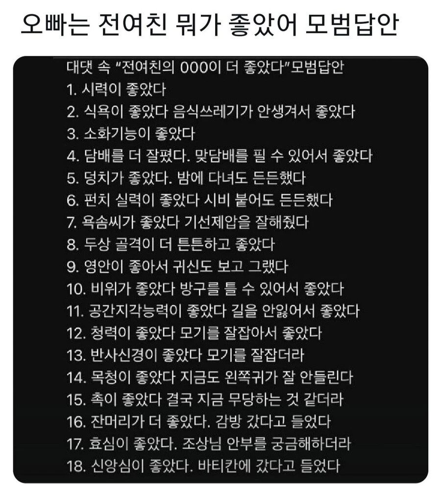 오빠는 전 여친 어디가 좋았어? 란 질문의 모범 답안