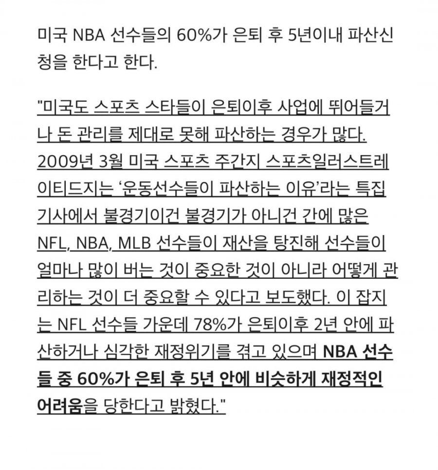 은퇴선수 60%가 5년안에 파산한다는 종목