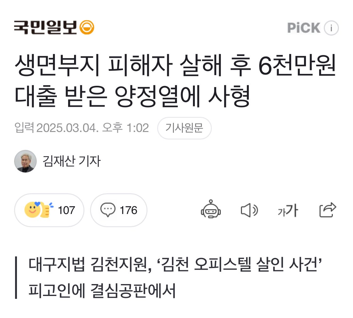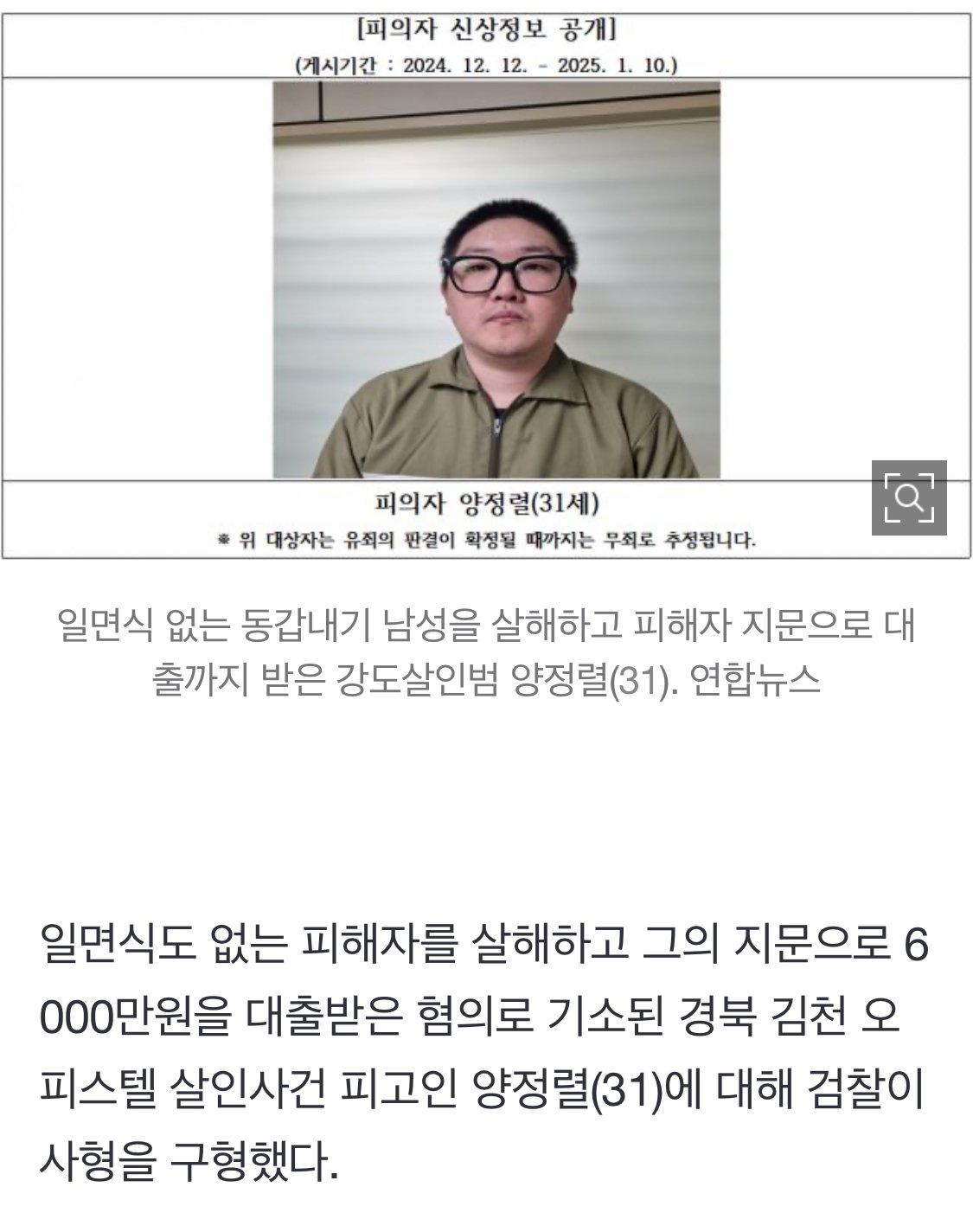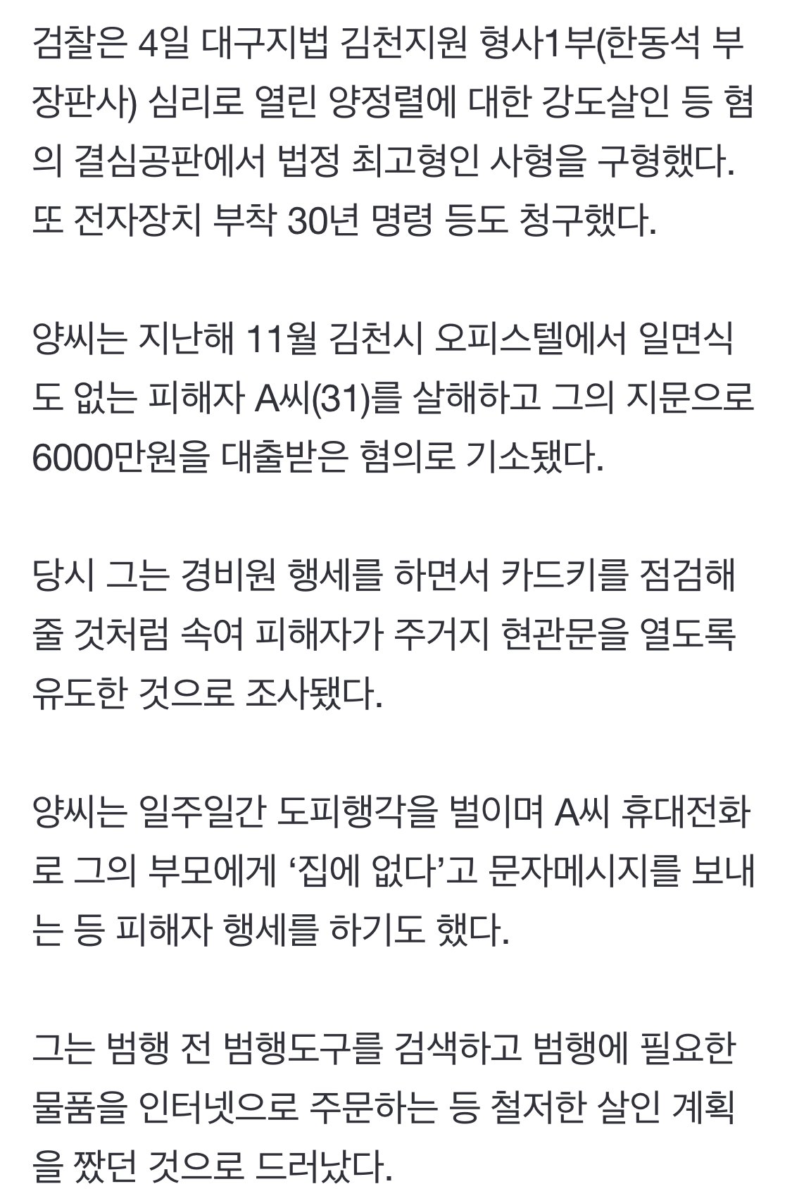 생면부지 피해자 살해 후 6천만원 대출 받은 양정열에 사형