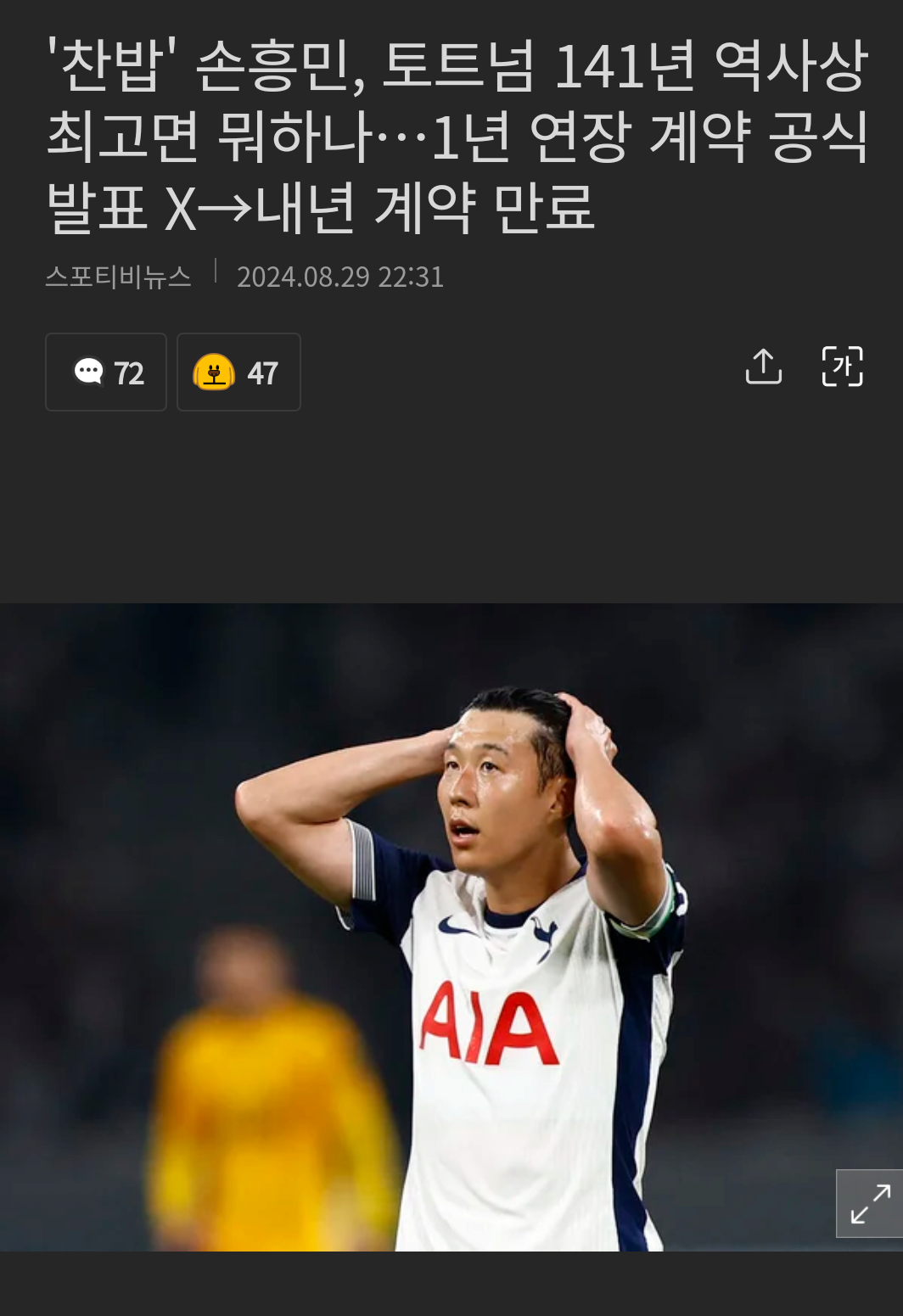 '찬밥' 손흥민, 토트넘 1년 연장 계약 공식발표 X, 내년 계약 만료