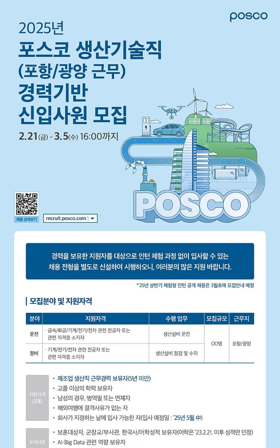 포스코 ‘경력기반 신입사원’ 채용모집