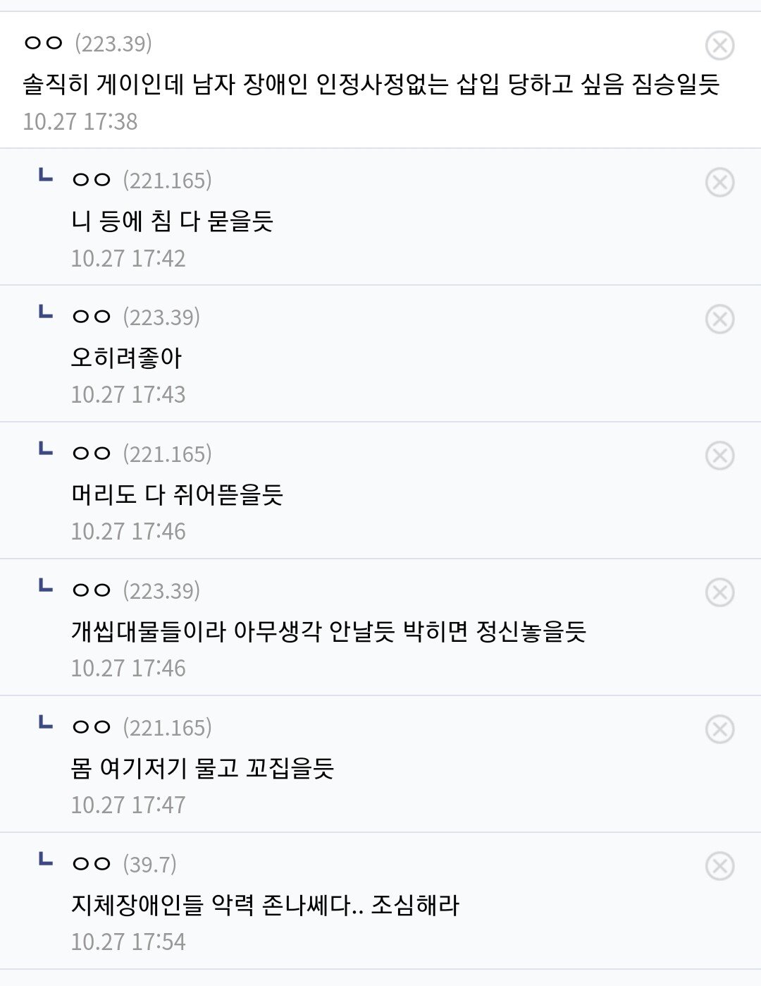 욕설이나 비방 목적의 댓글은