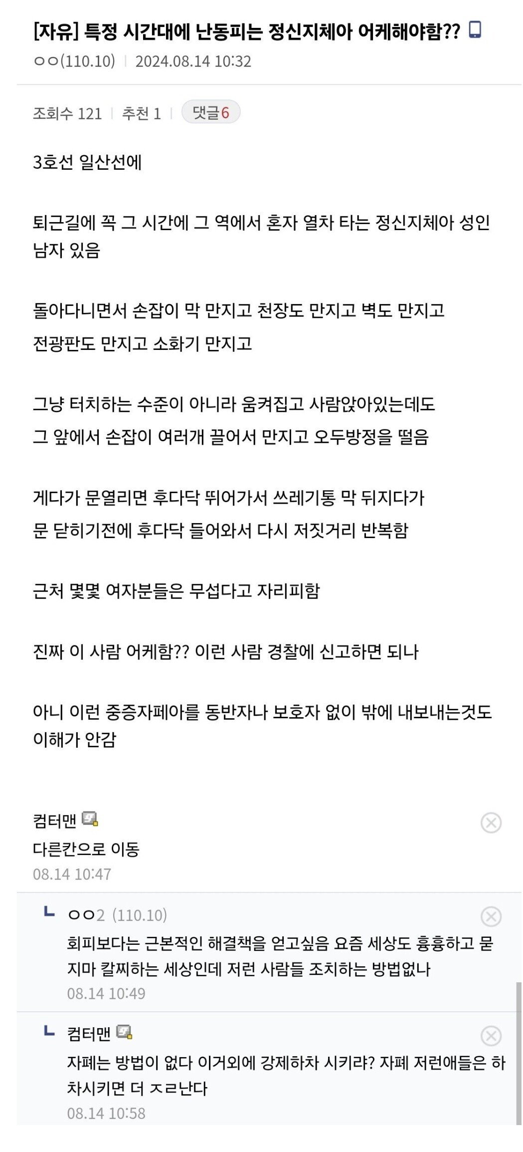 다른 사용자들에게 불쾌감을 줄 수 있는