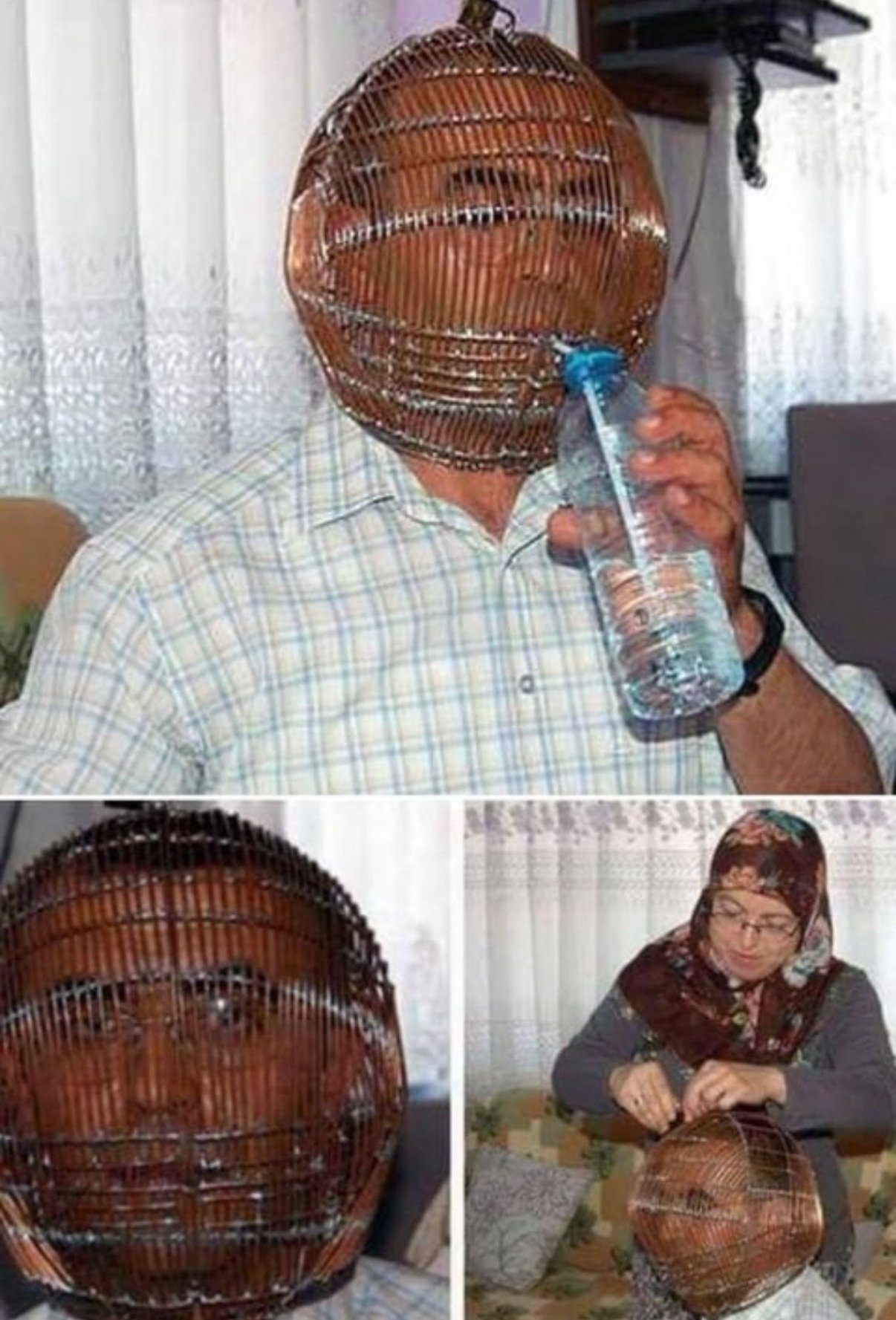 금연이 힘들어서 본인의 머리를 새장에 가두고 열쇠를 부인에게 맡김 ㅋㅋㅋㅋ 근데 빨대 들어가는거 보면 담배도 빨 수 있을거 같은데 ㅋㅋㅋ