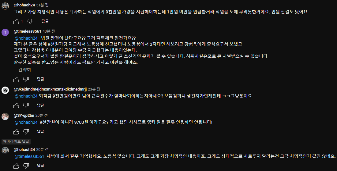 9천만원이 아니라 9700원이라구요? 멘트가 9천만원을 미지급 했다구요?가 되어버림