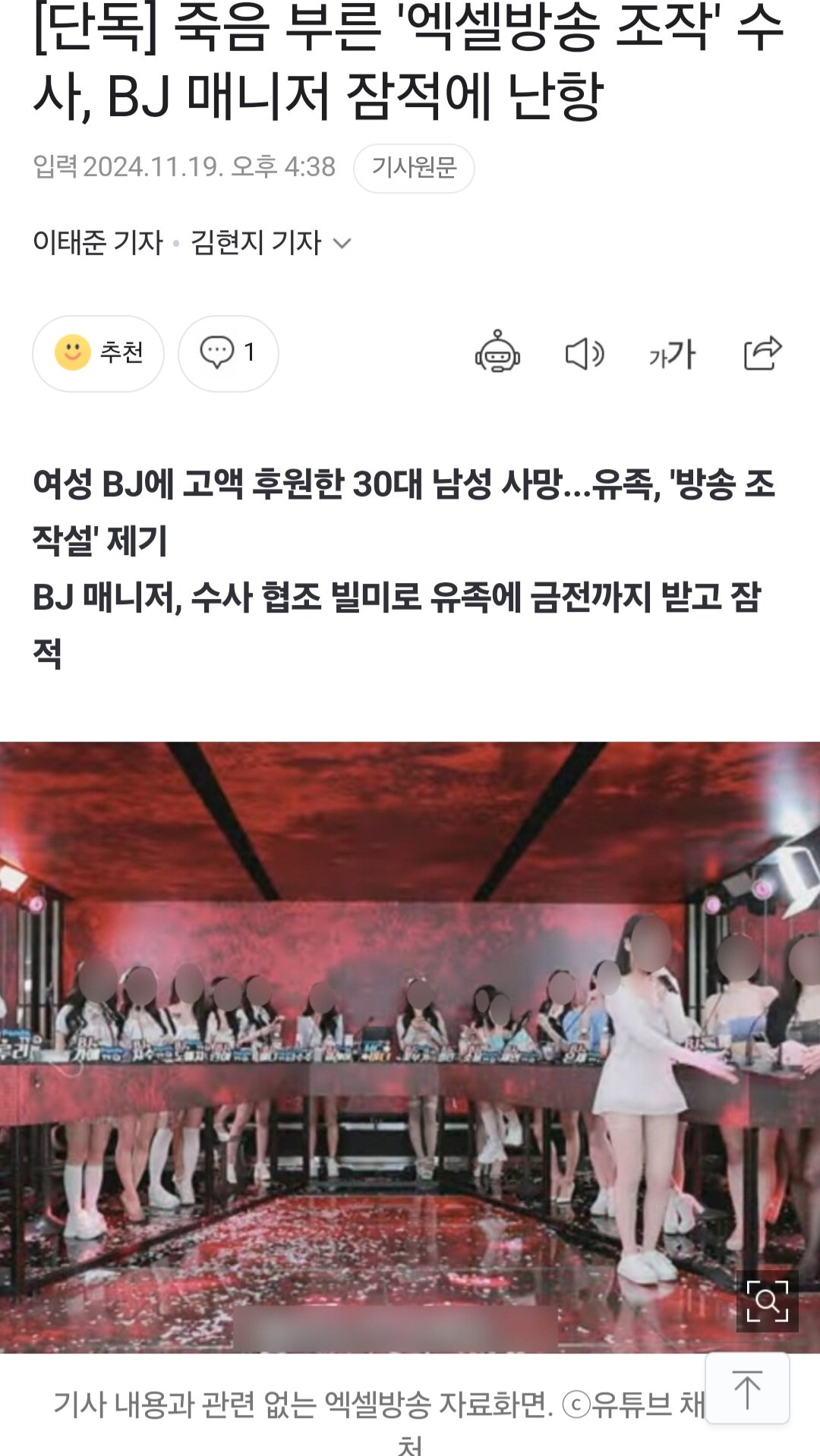 그러나 고씨는 현재 3개월째 조사에 응하지 않고 있다. 그는 유족에게서 금전을 받은 후 잠적했다. 이 때문에 조작방송 의혹에 대한 수사도 멈춰 있다. 서울 서초서는 명예훼손 혐의와 관련해 여성 BJ 등을 불러 조사한 상황이다. 고씨의 잠적 탓에 핵심 인물인 박씨에 대한 조사까지 나아가지 못하고 있는 것이다. 서초서 관계자는 이와 관련해 "현재 조사 중인 사건으로 자세한 수사 상황은 설명하기 어렵다"고 밝혔다.