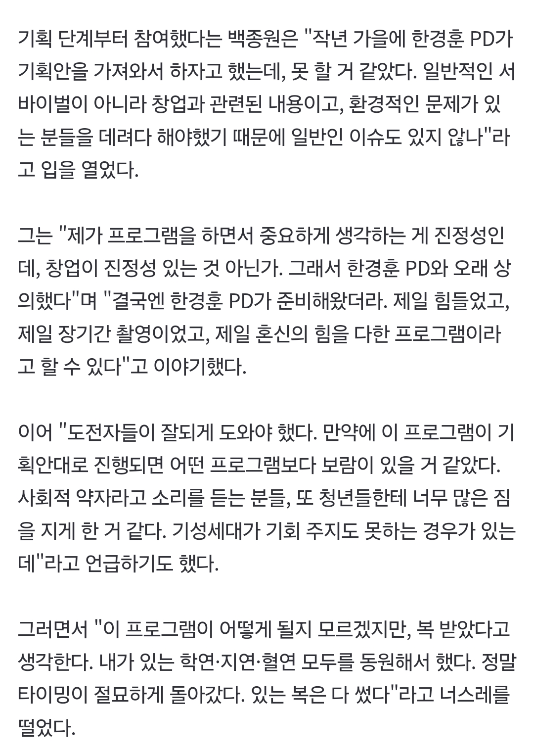 '레미제라블' 백종원 "일반인 이슈 예상했지만…학연·지연 총동원해"