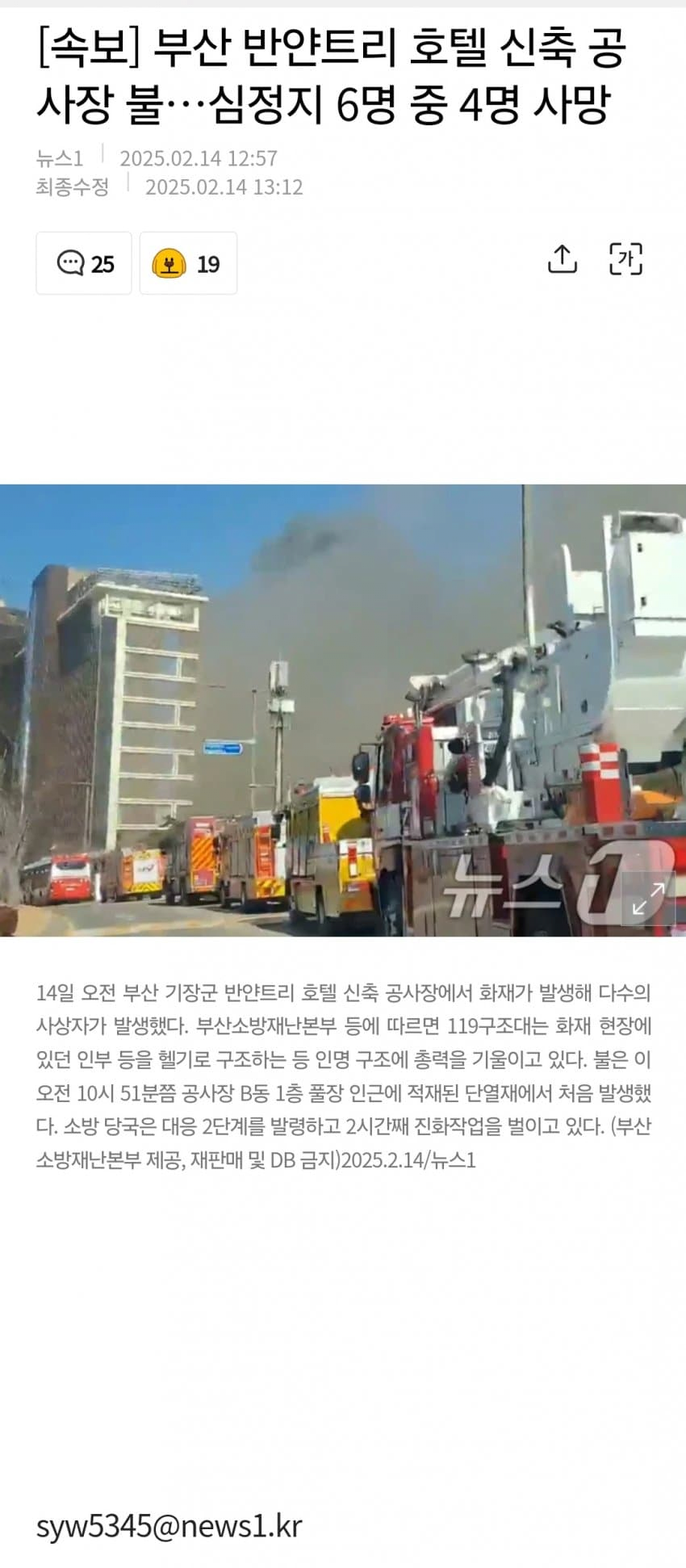부산 반얀트리 호텔 신축 공사장 불…심정지 6명 중 4명 사망