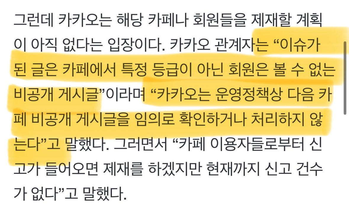 뭐지 그럼 카카오는 조주빈 같은 애들이 다음 카페 파고 N번방 특정 등급 회원 전용으로 운영하면 놔두겠다는 건가 ㅋㅋㅋㅋ