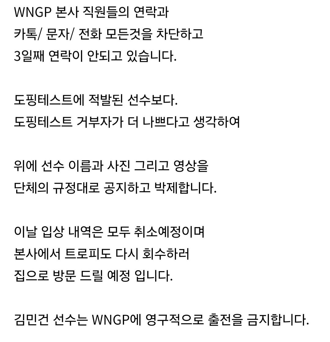 내추럴 대회 나와서 입상한 사람한테 협회측이 랜덤 도핑테스트 해보자니까 대회 현장에서 도망간 후 3일째 협회측 연락 안받아서 협회측이 빡쳐서 얼굴 공개함 ㄷㄷ