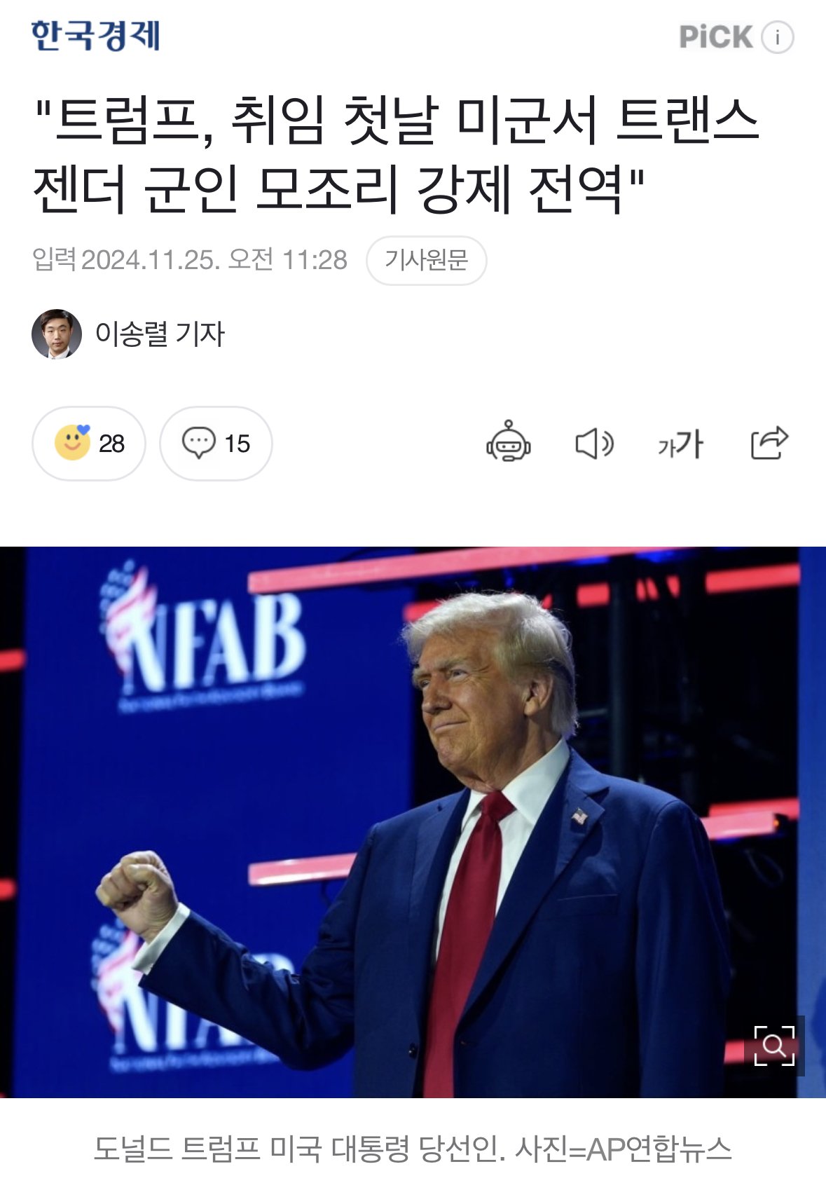 트럼프 “트랜스젠더 군인들 모조리 추방할 것”