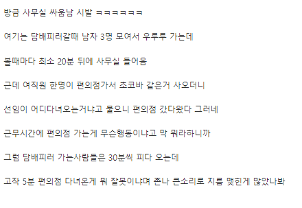 담배 30분 피는 놈 vs 편의점 5분 다녀온 놈