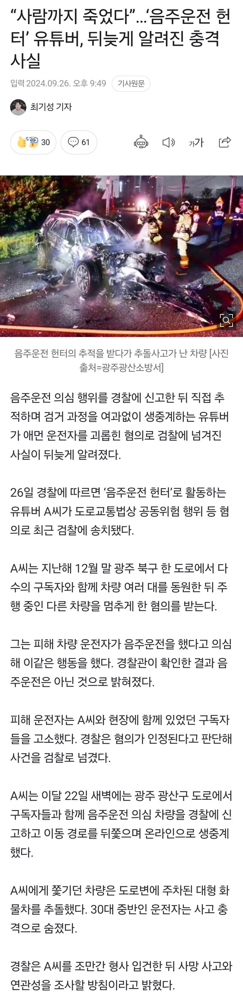 “사람까지 죽었다”…‘음주운전 헌터’ 유튜버, 뒤늦게 알려진 충격 사실
