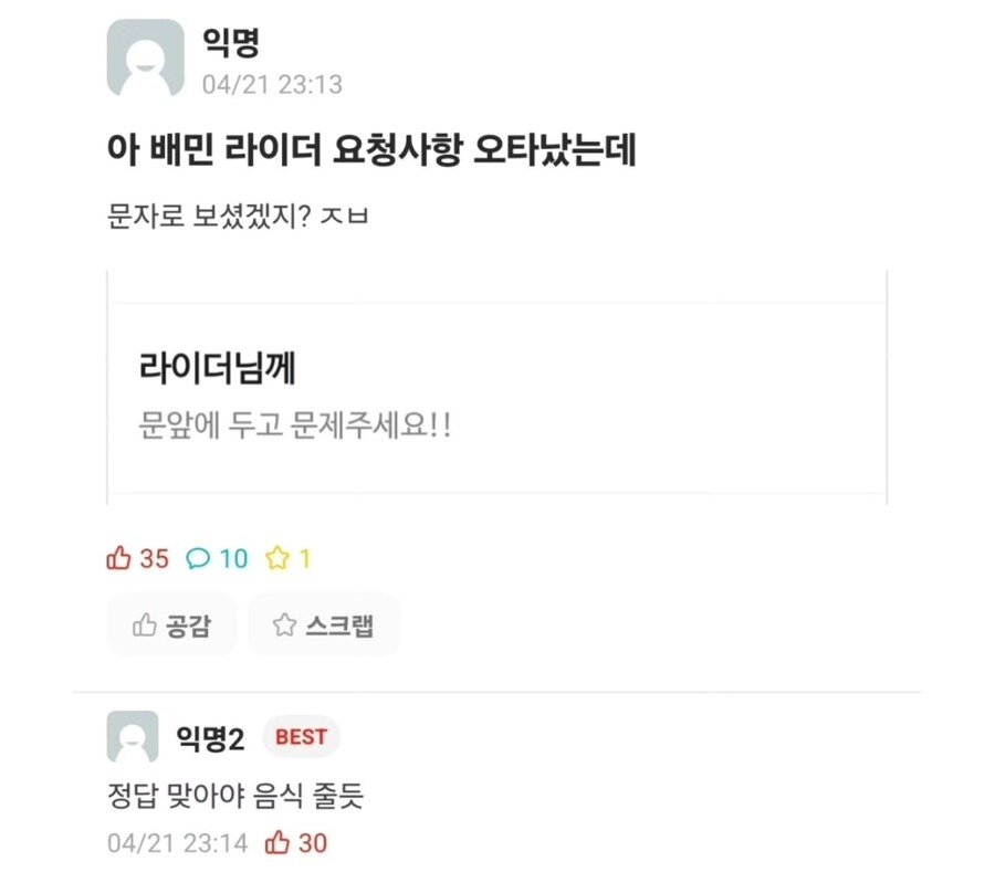 배민 요청사항 오타 ㅎㄷㄷㄷ