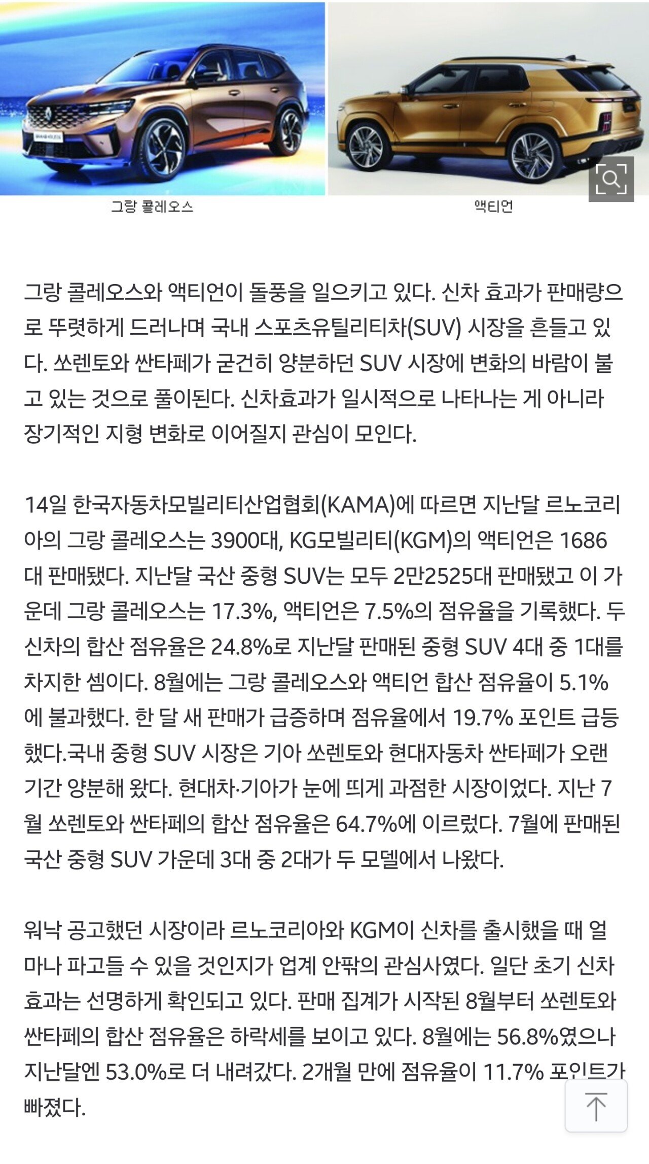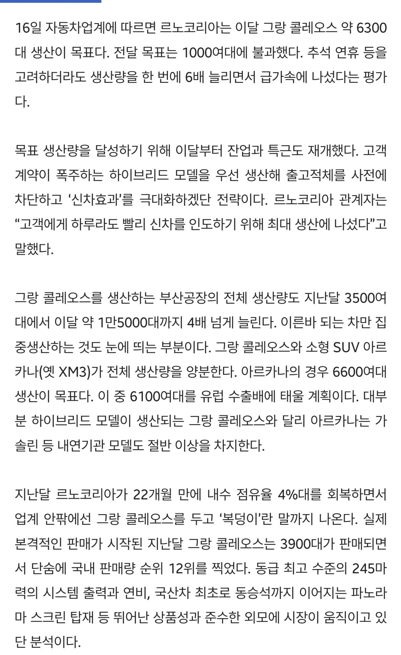 판매량 순위 12위 / 르노코리아 시장점유율 4% 회복 등