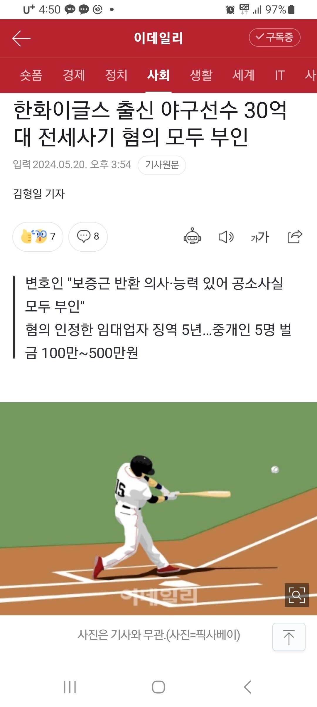 한화이글스 출신 야구선수 30억대 전세사기 혐의 모두 부인