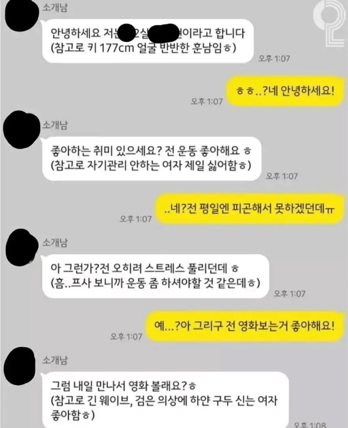 소개팅 하기로 한 괄호남 퇴치 방법좀 알려줘