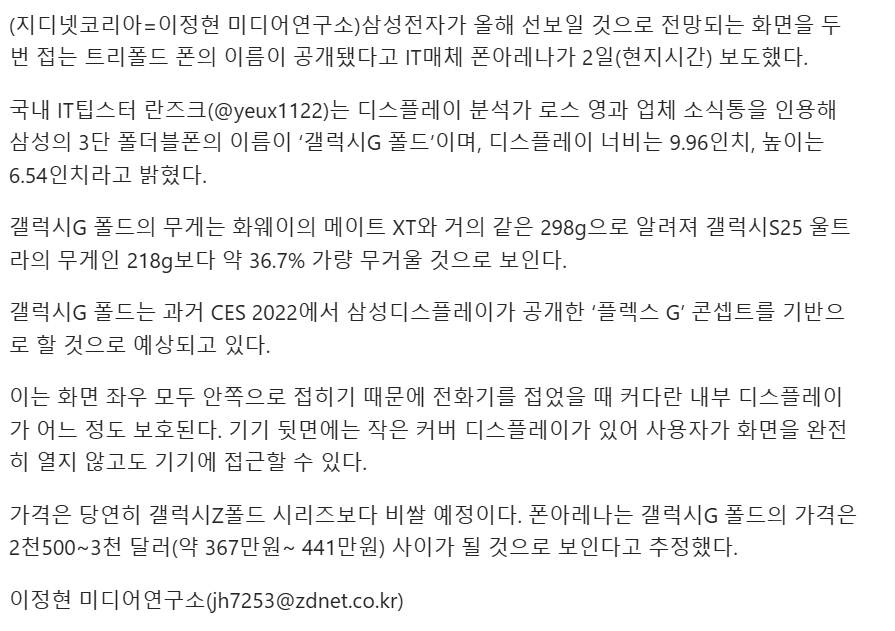 삼성 2번접히는 3분할 화면 휴대폰 공개