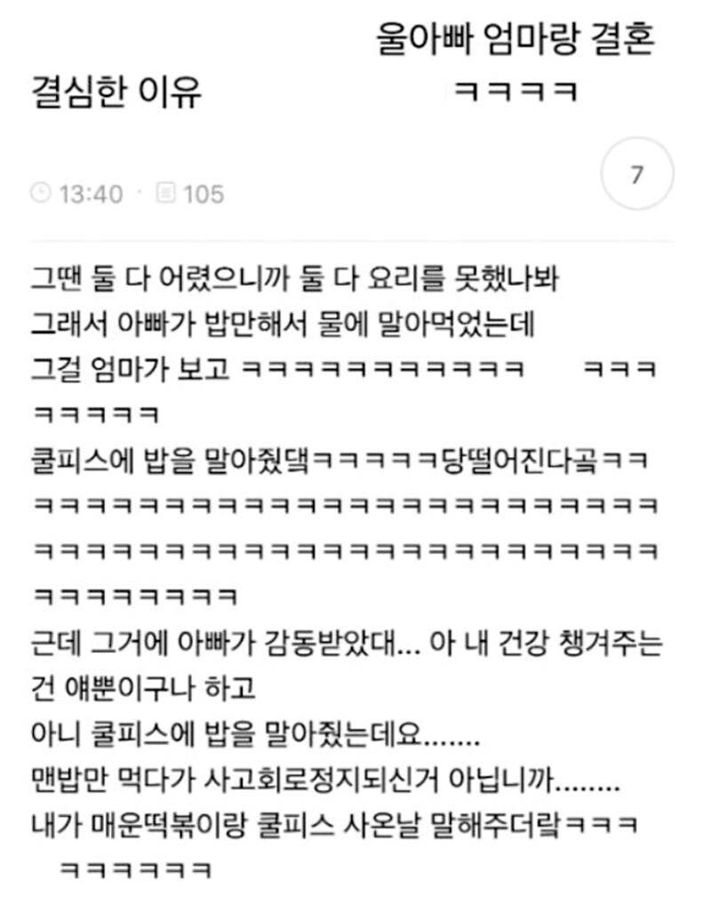 쿨피스에 밥 말아줘서 결혼 결심한 아빠