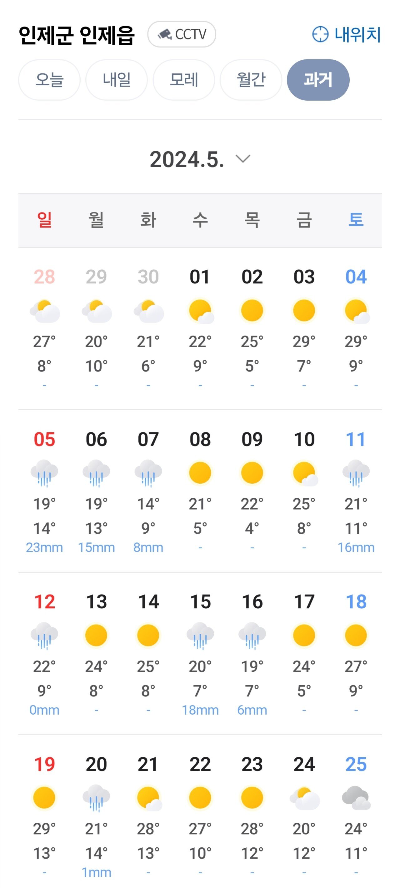 지난주 인제 23일날 날씨