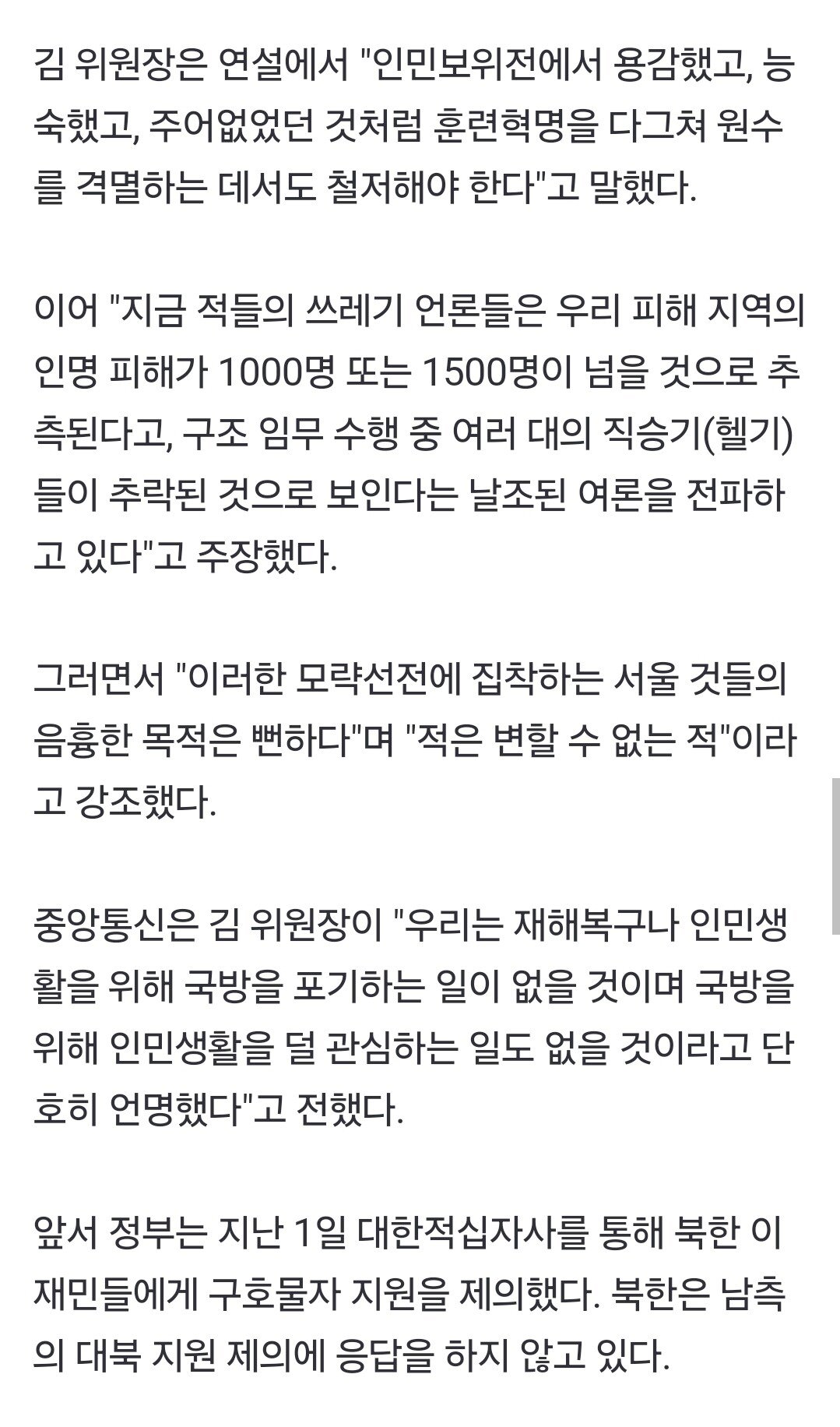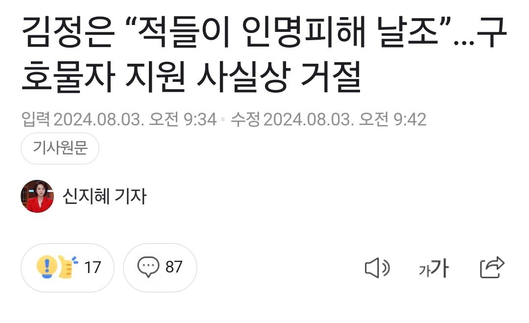 [속보] 북한, 대북 지원 사실상 거절 첫 입장 내놔 ㄷㄷㄷㄷ