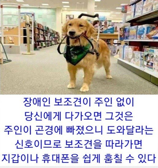 시작장애인 안내견이 보호자 없이 다가오면