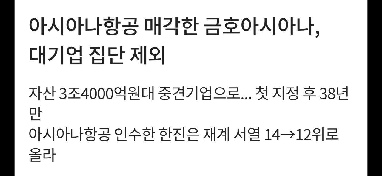 아시아나항공 매각한 금호아시아나, 대기업 집단 제외