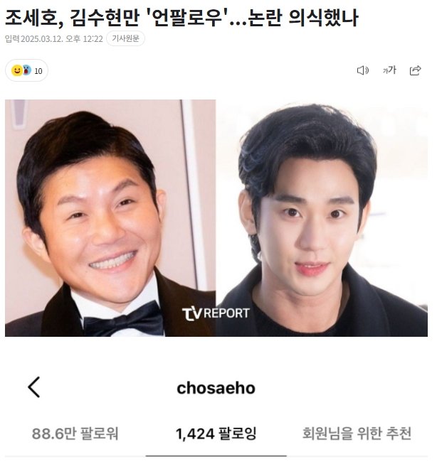 조세호, 김수현만 '언팔로우'...논란 의식했나