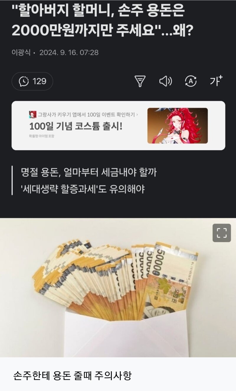 속보) 명절 용돈에 상한선 걸림