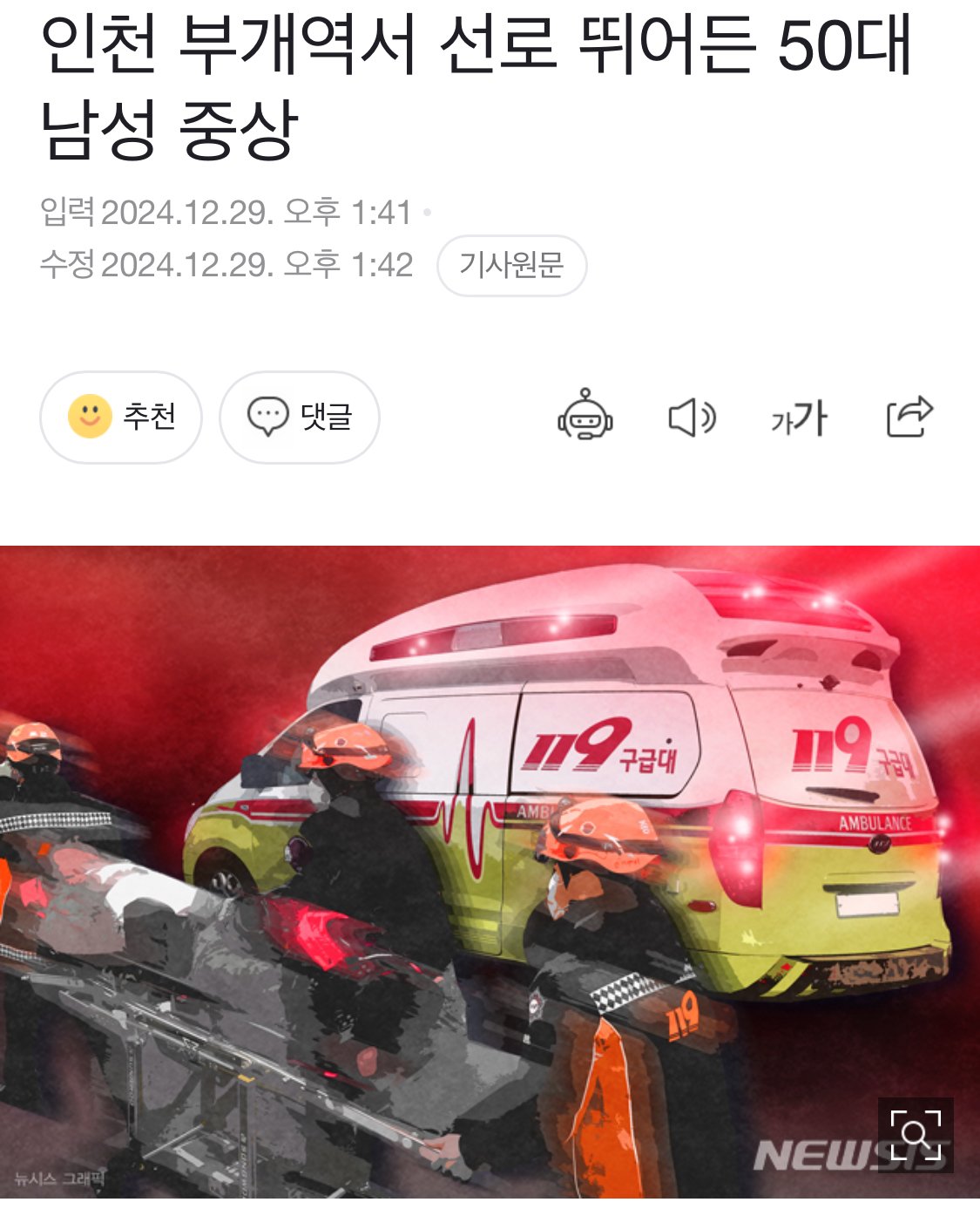 항공사고 소식으로 정신없는 와중에 철도 사상사고 발생