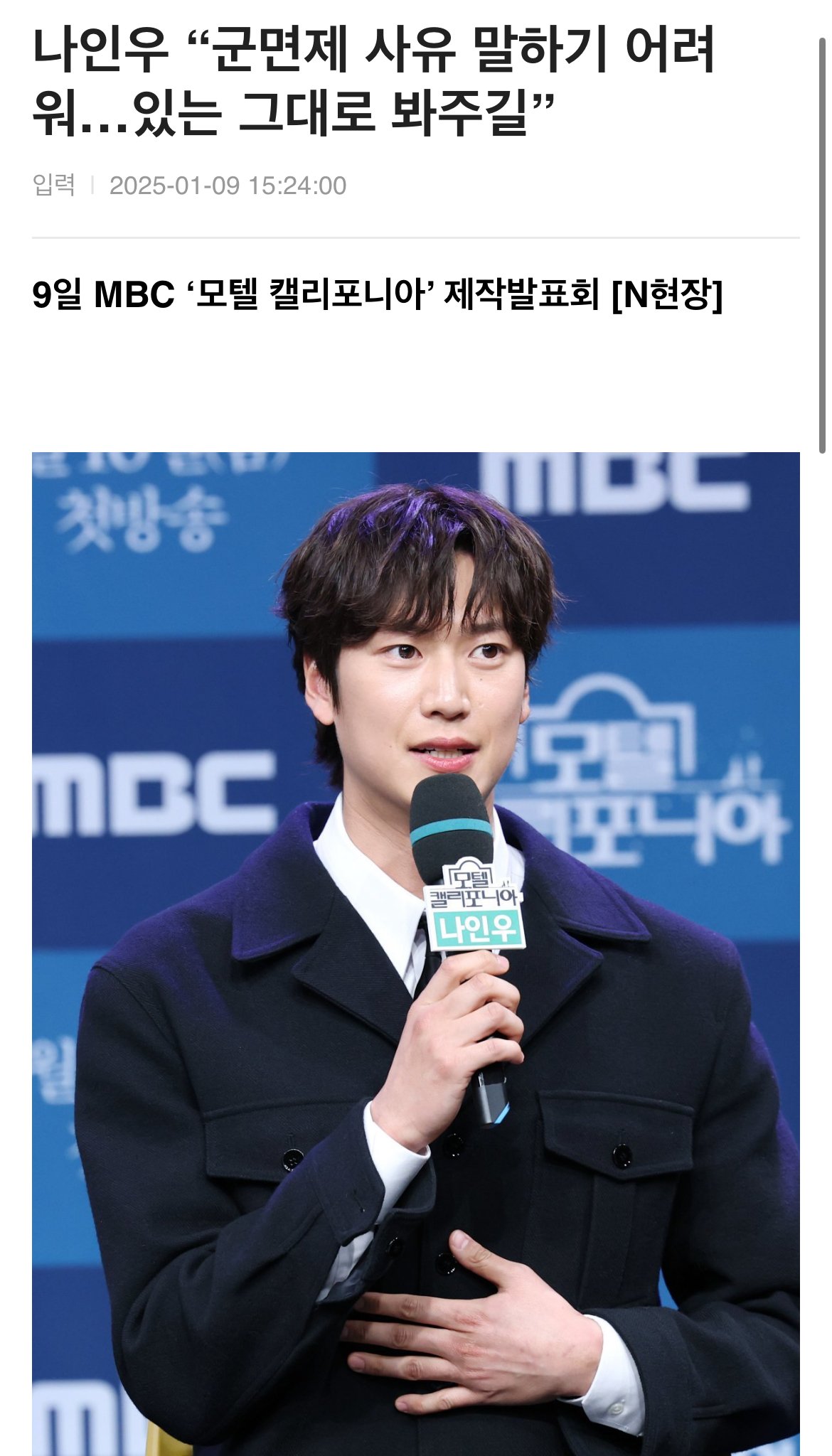 나인우 “군면제 사유 말하기 어려워…있는 그대로 봐주길”