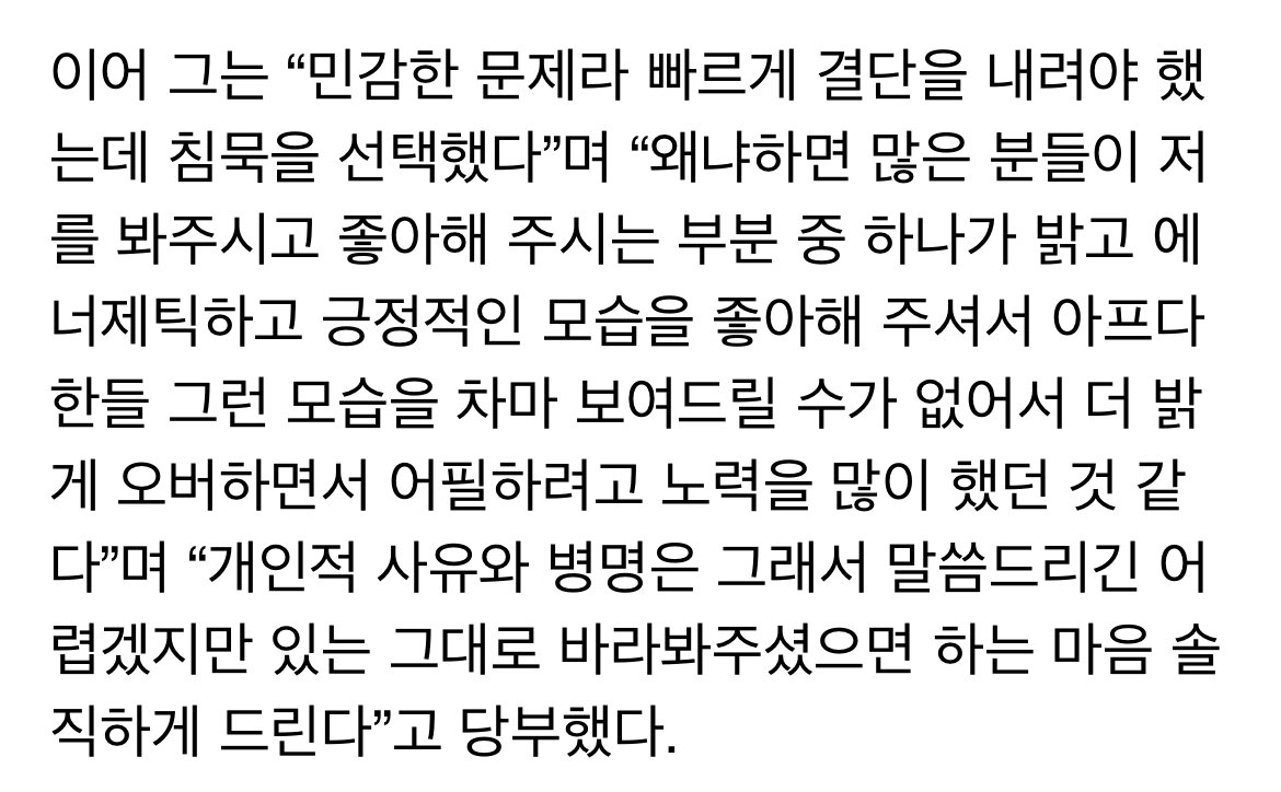 정신 문제든 신체 문제든 굳이 밝힐 의무 없긴함ㅇㅇ