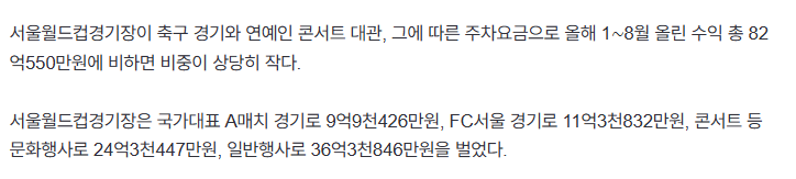 상암 경기장의 임대 수익은 총 80억 정도임