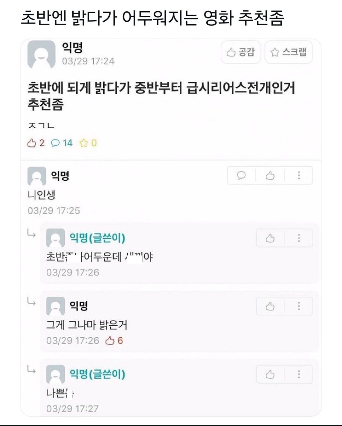 초반엔 밝다가 어두워지는 영화 추천좀