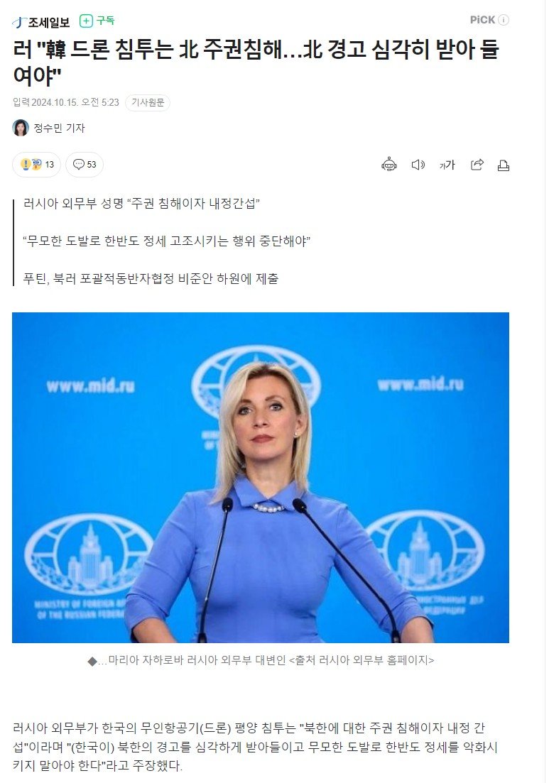 러 "韓 드론 침투는 北 주권침해…北 경고 심각히 받아 들여야"